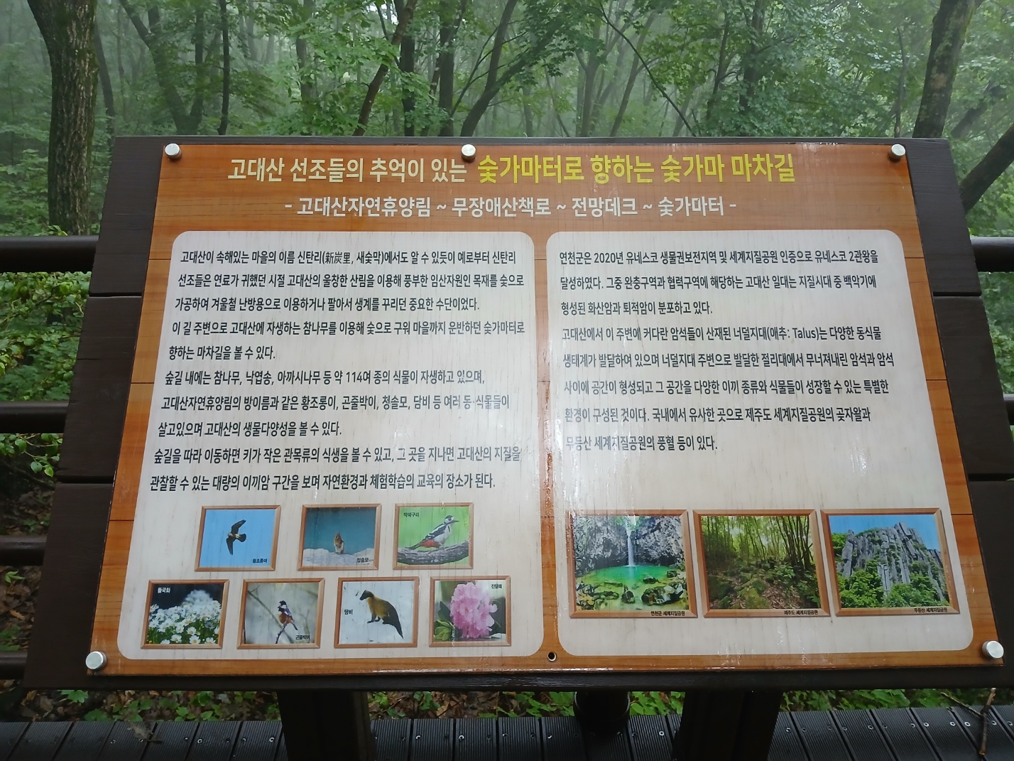 산행을 마치고 주차장으로 돌아오는 길, 비에 젖은 몸은 불편했지만
